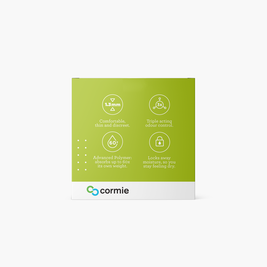 With soft quilting and up to 66% thinner than other pads, Cormie products are more comfortable and discreet. Plus, our linings have a PH-balanced contact layer to match the natural PH level of skin, so there is much less irritation.
