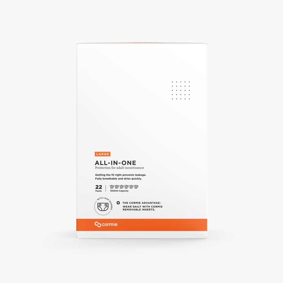 All Cormie products have scientifically engineered quilting to move liquid away from your skin and a scientifically developed polymer absorbs up to 60 times its weight in fluid and locks it in, so you will stay dry.