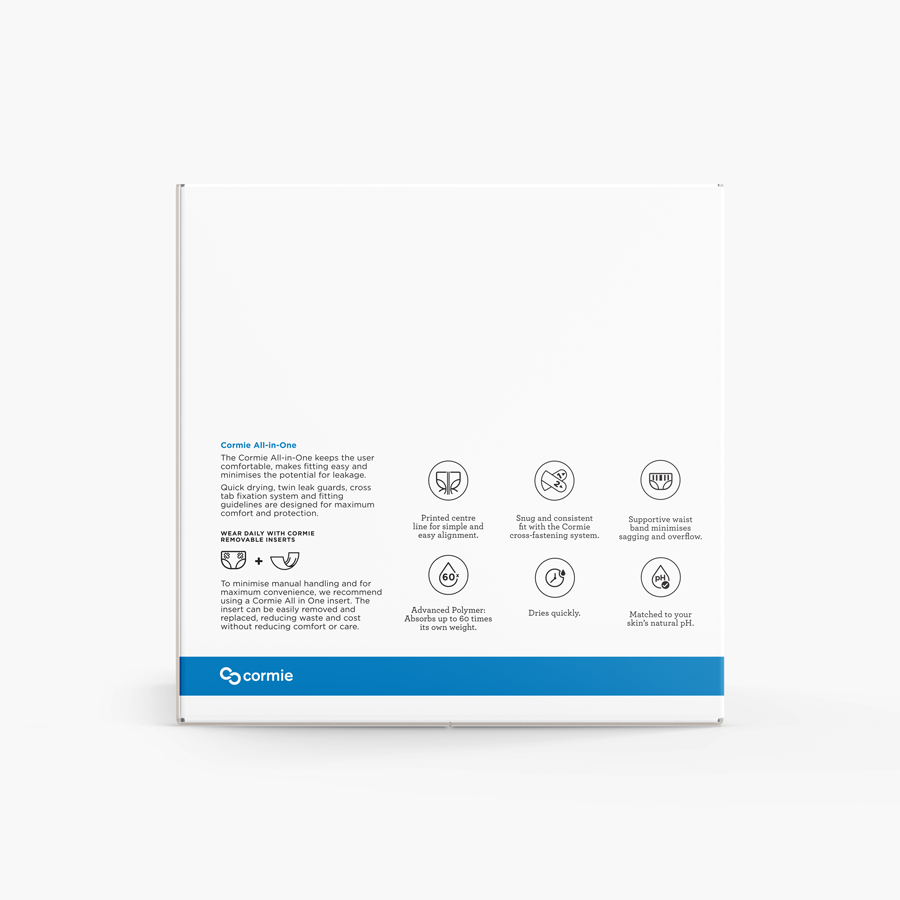 All Cormie products have scientifically engineered quilting to move liquid away from your skin and a scientifically developed polymer absorbs up to 60 times its weight in fluid and locks it in, so you will stay dry.